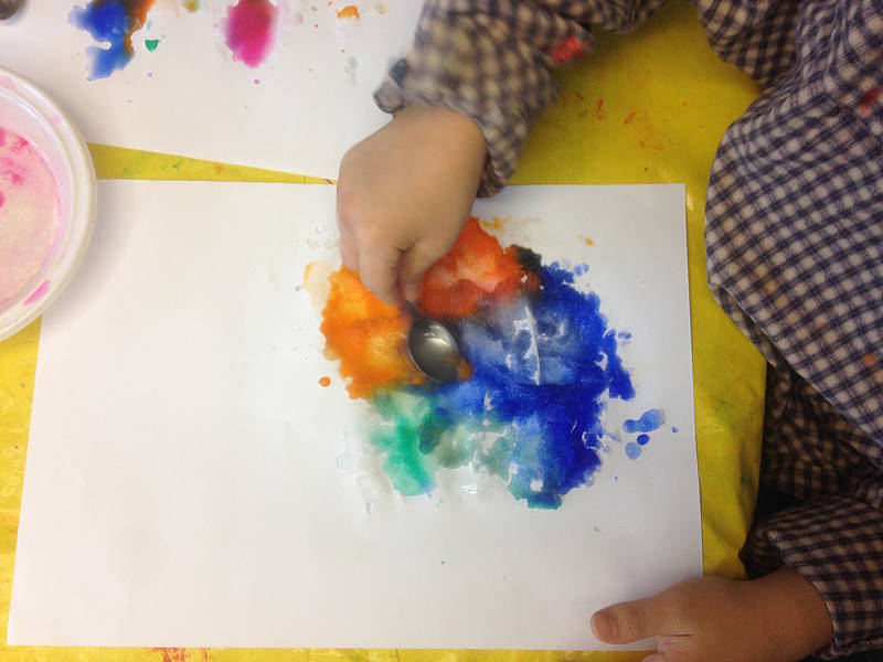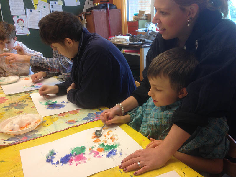 Nach den Weihnachtsferien konnten die Schüler in Form von Pustebildern ihr eigenes Silvesterfeuerwerk noch einmal Revue passieren lassen. Auf einem schwarzen Papier wurden mit viel bunter Farbe und Kreide die schönen Feuerwerke der Silvesternacht gepustet und gemalt. In den AG-Stunden, in denen draußen der Schnee lag, wurden mit bunt eingefärbtem Schnee schöne Bilder hergestellt.