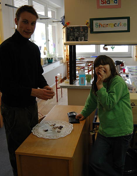 Die Schüler hatten viel Spaß daran ein bisschen Theater zu spielen. Und es gab natürlich auch echte Schokolade: Wer sie unter der ganzen Scherz-Schokolade erkennen konnte, durfte sie aufessen!