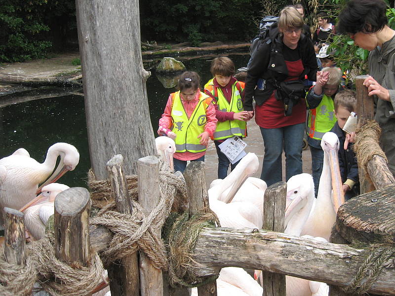 Na klar – zumindest zu Besuch! Am 31.05.2012 war es wieder soweit: gesponsert von der Sparkasse Hannover ging es für einen Tag in den Erlebniszoo Hannover. Gleich nach der Ankunft in der Schule sind wir Richtung Hannover gestartet, um soviel Zeit im Zoo zu verbringen, wie nur möglich. Denn der Zoo ist wirklich riesig! Während die Eintrittskarten besorgt wurden, haben die Schüler gemütlich gefrühstückt, damit es dann frisch gestärkt losgehen konnte. Zunächst gingen wir ins Pelikangehege. Dieses Jahr haben die Erwachsenen vorgesorgt und alle Brillen eingesammelt, damit sie nicht durch Schülerhilfe im Wasserbecken verschwinden! :-) Die Pelikane waren sehr neugierig und ließen sich sogar anfassen. Aber ein bisschen unheimlich waren sie schon, nur die ganz Mutigen haben sich näher an sie herangetraut.
