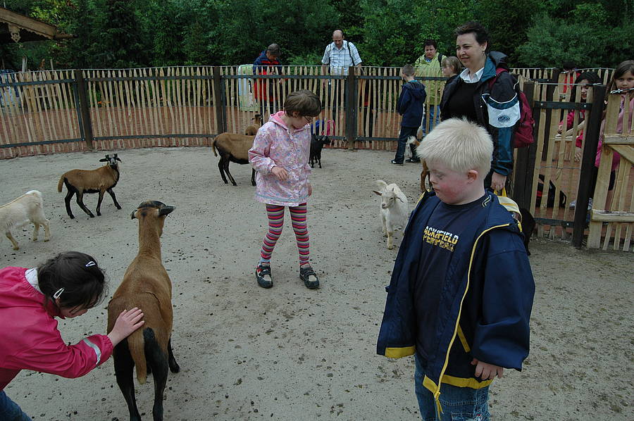 Nach dem Essen war noch Zeit, bei den Ziegen und Alpakas vorbeizuschauen. Es waren ganz viele süße Babyziegen da, die uns neugierig beschnupperten. Von Schülern geplante Befreiungsaktionen einzelner Ziegen konnten die Erwachsenen zum Glück erfolgreich abwenden. :-)