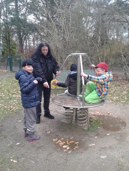 Im Herbst nahmen wir eine Blätterdusche. Im Winter machten wir eine Schneeballschlacht und bauten einen kleinen Schneemann.