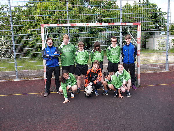 An einem Dienstag im Oktober 2012 trafen wir uns zum ersten Mal: acht hoch motivierte Schülerinnen und Schüler und ihre drei Trainer. Wir hatten es uns zur Aufgabe gemacht, unsere Muskeln zu stählen und zu ausgewiesenen Künstlern am runden Leder zu werden. Seit diesem Tag trafen wir uns jeden Dienstag zwischen 13.45 Uhr und 15.15 Uhr. Das Training begann immer mit ein paar Runden Warmlaufen und anschließendem Dehnen der Muskeln. So vorbereitet stürzten wir uns in das eigentliche Training unserer fußballerischen Fähigkeiten. Angeleitet von den Trainern Herrn Ruddat, Herrn Borghorst und Herrn Fraas übten wir das Passspiel, verbesserten die Koordination und Orientierung auf dem Spielfeld und suchten natürlich häufig den Torabschluss. Schon bald hatte jeder von uns eine feste Position auf dem Platz und wir trieben uns gegenseitig an, die besten Stürmer, Mittelfeld- und Abwehrspieler und der beste Torwart zu werden, den die Schule je gesehen hatte. Am Ende einer jeden Trainingseinheit stand das große Spiel, mal mit und mal ohne die Trainer, an und eines war dann immer sicher: Es gab Gewinner und Verlierer. Eine Niederlage zu akzeptieren, um beim nächsten Mal noch besser zu werden, war und ist wohl die größte Herausforderung, der wir uns stellten und noch immer stellen!