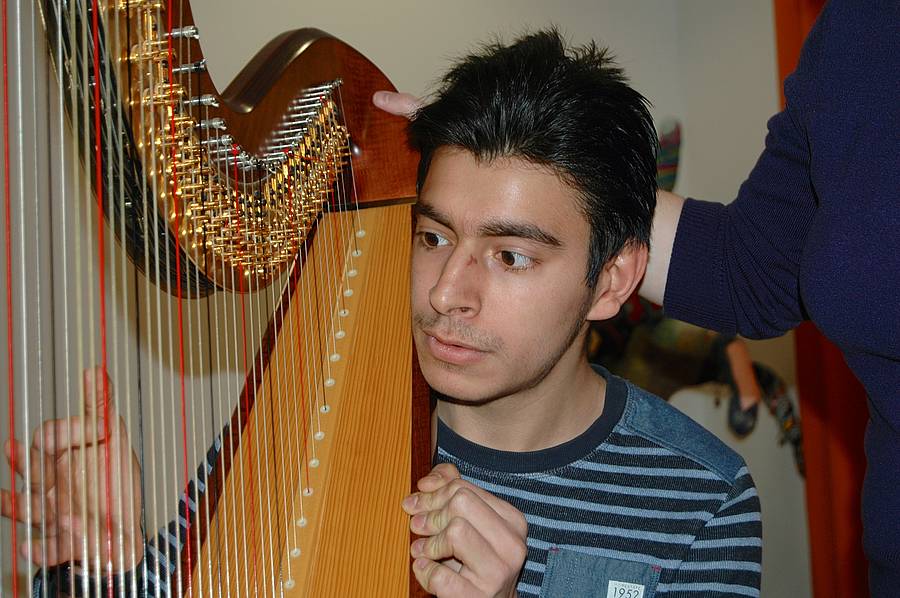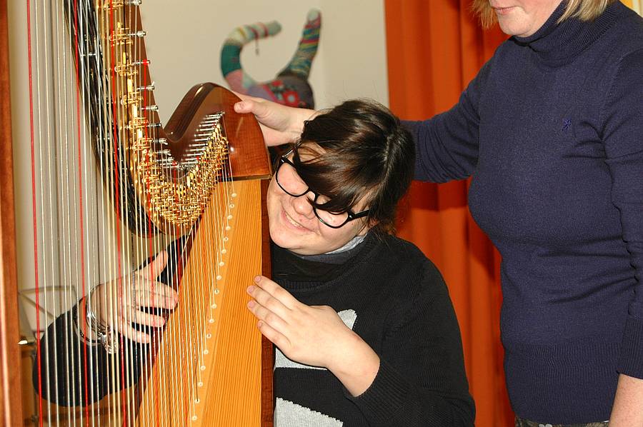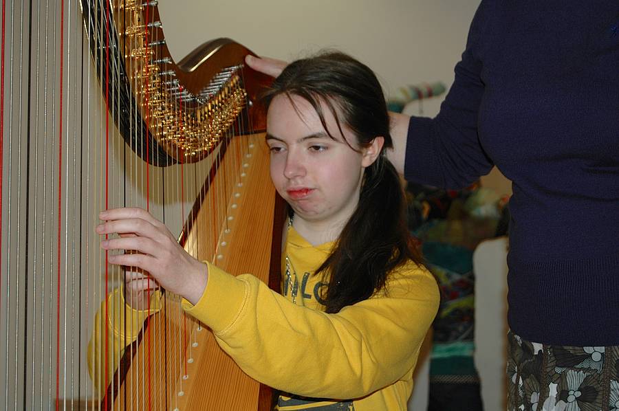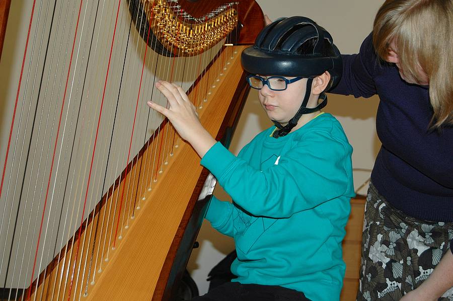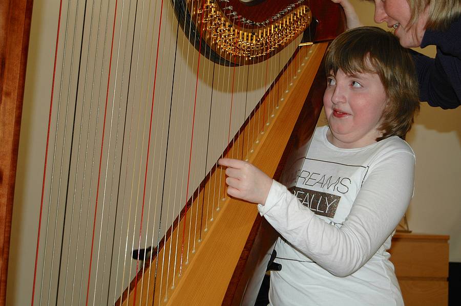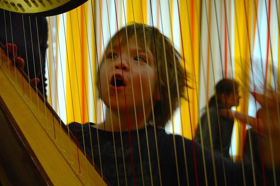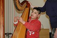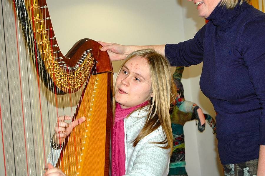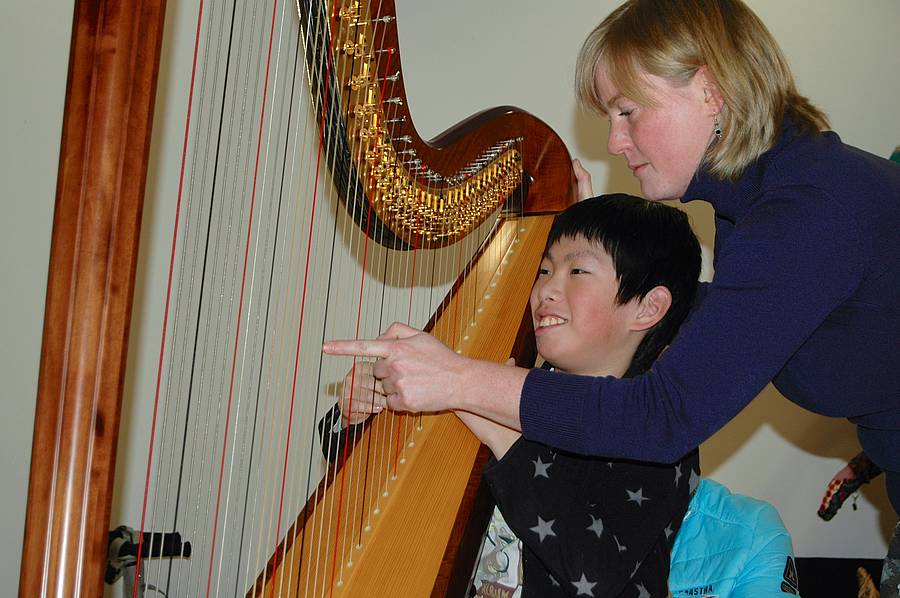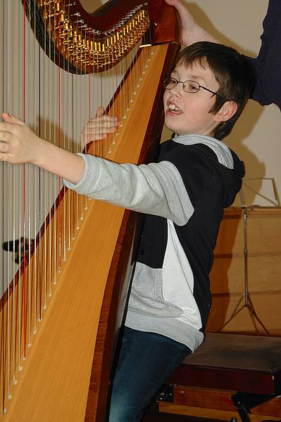Da Frau Meyer schon zum fünften Mal bei uns war, wussten unsere SchülerInnen schon, was nach dem Vorspiel kam: sie dürfen selber auf der Harfe spielen. Fast alle unsere SchülerInnen trauten sich auch wirklich an dieses beeindruckende, große Instrument und versuchten unterschiedliche Klänge auf ihm zu erzeugen. Es hat allen viel Spaß gemacht, wie man auf den nachfolgenden Fotos erkennen kann.