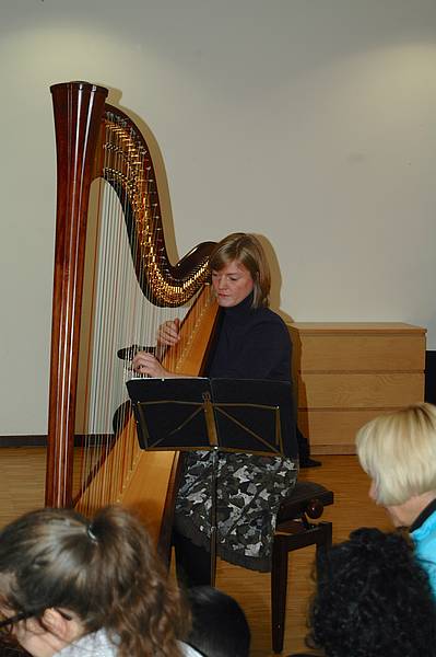 Auch in diesem Jahr besuchte uns die Musikerin Birthe Meyer mit ihrer beeindruckenden Harfe. Dieses Mal entschieden wir uns nicht für einen Termin in der Weihnachtszeit, da in dieser Zeit schon so viele Aktionen stattfanden. Am 13. Januar war es dann so weit. Frau Meyer spielte zunächst eine halbe Stunde lang unterschiedliche Stücke aus aller Welt. Viele von unseren Schülern und SchülerInnen konnten längere Zeit ganz aufmerksam zuhören.