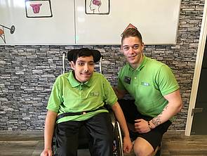 Als Teil des Projektes „Wir schauen uns Berufe an“, darf Ismail den Job als Fitnesstrainer hinein schnuppern. Er ist megastolz darauf und hat viel Spaß dabei, den Trainer Björn ein bisschen in seinem Berufsalltag zu begleiten. Anschließend muss er dann aber seinen Mitschülerinnen und Mitschülern davon berichten.