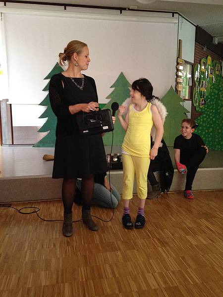Nach vielen Proben waren wir im Mai endlich so weit, das Stück vor Publikum aufzuführen. Alle Kinder und Erwachsene waren sehr aufgeregt, schließlich war die ganze Schule und die Eltern eingeladen. Aber: Alles ging gut!