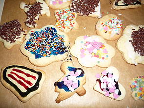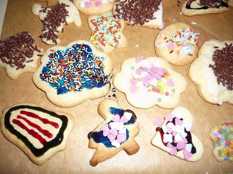 Aus dem dünn ausgerollten Teig werden die Plätzchen mit vielen verschiedenen Ausstechförmchen ausgestochen. Mit Schokolade, Zuckerguss und bunten Perlen verziert sehen die Kekse einfach super aus und schmecken sehr, sehr lecker. Eigentlich kann man sie ganz gut verschenken, wenn sie nicht vorher alle weggenascht werden.