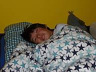 Aber am frühen Abend haben wir uns dann doch zurück auf den Weg zur Schule gemacht, um dort Pommes und Würstchen zu essen. Zum Nachtisch gab es Eis - lecker! Alle haben sich ordentlich die Bäuche vollgeschlagen. Nach so einem langen Tag waren wir dann ganz schön müde. Als wir uns gewaschen und unsere Zähne geputzt hatten, haben wir noch eine Geschichte vorgelesen bekommen und ein Nachtlied gesungen. Und dann sind wir alle in unsere kuscheligen Betten gekrabbelt. Natürlich hat es mit dem Einschlafen bei einigen noch ein bisschen gedauert, aber irgendwann haben dann doch alle Igelkinder geschlafen.