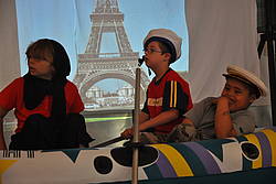 Von der "Löwenklasse" war für die Einschulungsfeier noch einmal die Aufführung "In Paule Puhmanns Paddelboot" aus der Projektwoche im Juni mit dem Thema "Europa" eingeübt worden. Dabei wurden sie von Schülern aus weiteren Klassen unterstützt. So sangen und spielten die "Löwen" für die "Bären", denn die neue Klasse soll "Bärenklasse" heißen.
