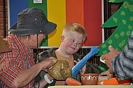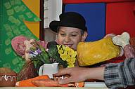 Dana als Räuberhauptmann, Frau Kistner, Louis, Pascal und Kamil beim Räuberessen! Aber dann wurden die Räuber vertrieben und die Bremer Stadtmusikanten aßen weiter: