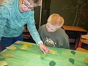 die Bäume für das Bühnenbild „werkeln“ und basteln,