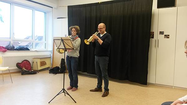 Am Montag, den 27.04.2015, hatten wir zwei Musiker der NDR Radiophilharmonie zu Gast: Frau Thies am Horn und Herr Schultz an der Trompete.