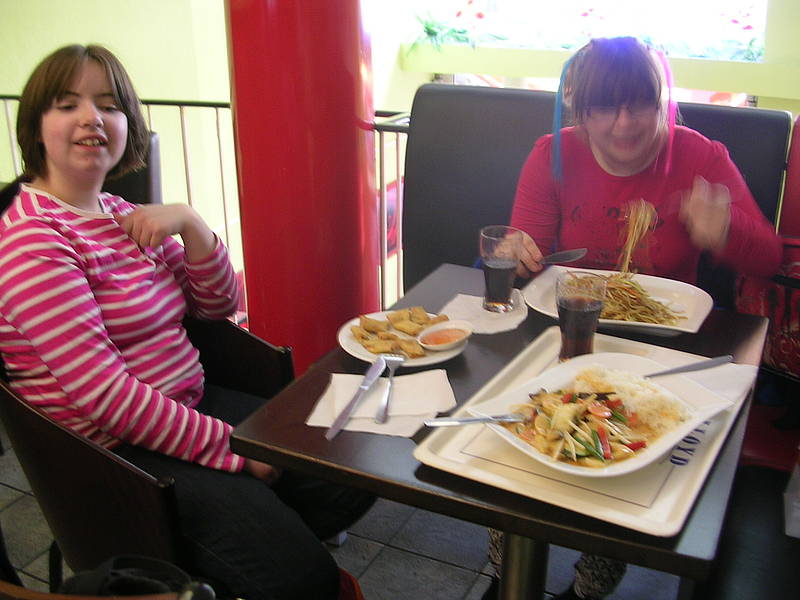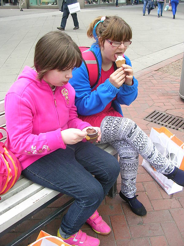 Daher sind wir anschließend erstmal Mittagessen gegangen und es gab gebratene Nudeln, Reis mit Gemüse und Frühlingsrollen - hmmmm! Zum Nachtisch noch eine leckere Kugel Eis in der Innenstadt von Hannover. Und natürlich schnell noch was Süßes für Herrn Pollen und Bea besorgt, die ja mit Anzhelika und Jessica in der Schule geblieben sind!
