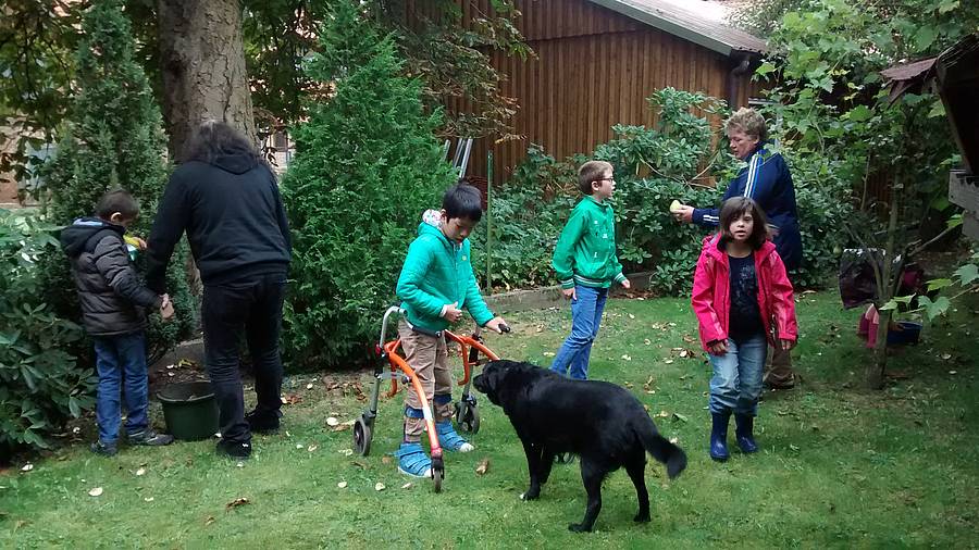 Auf dem Bauernhof von Frau Ridder konnten wir fleißig zwei Eimer mit Kastanien füllen!