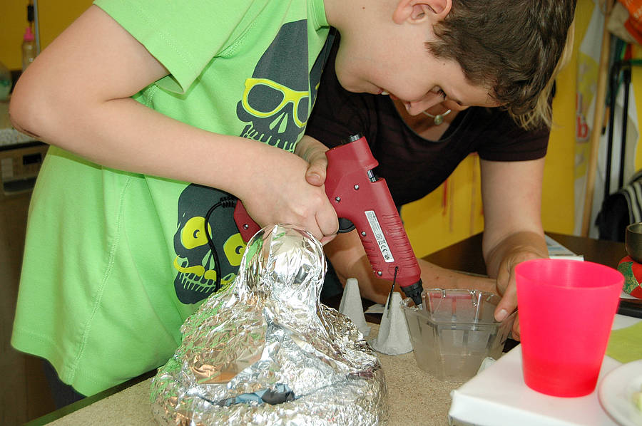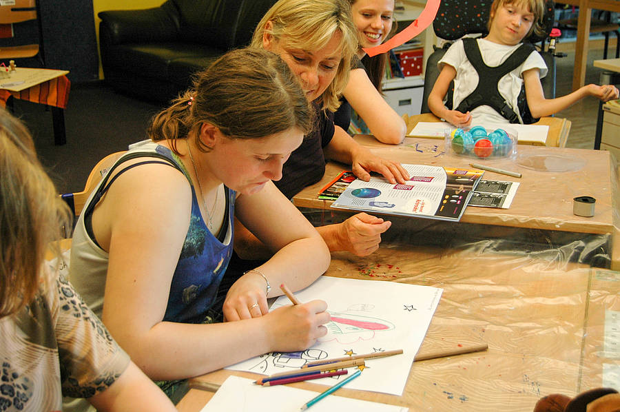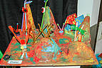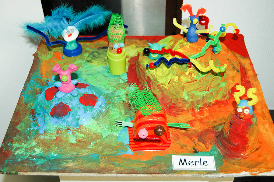 Am Dienstag haben wir erstmal aufgemalt, wie es auf unserem Planeten wohl so aussieht und ob da auch andere Wesen wohnen. Und wenn ja, sind diese freundlich oder bösartig? Auf den Bildern konnte man schon sehr viele verschiedene Ideen erkennen...