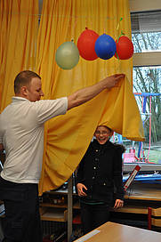 Heute hat die Firma Seidel aus Garbsen in unseren Klassenräumen und im Büro neue Gardinen aufgehängt. Es hat ganz schön lange gedauert, bis die vielen, vielen Häkchen eingehängt waren und alle Gardinen an den Fenstern hingen.