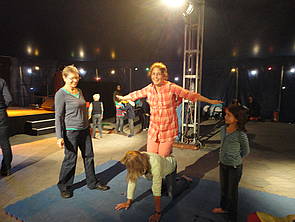Feride erzählt: "Ich fand das Stehen auf der Rollwippe gut. Auf das Nagelbrett habe ich mich auch getraut. In der Dehnkiste wurde ich fast abgestochen. Aber alles hat Spaß gemacht!"