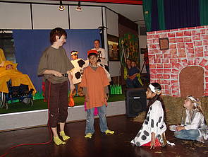 Auf der Bühne gab es das Theaterstück  "MILLY UND MOLLY"  mit einer besonderen Einlage des Rap-Huhns zu sehen.