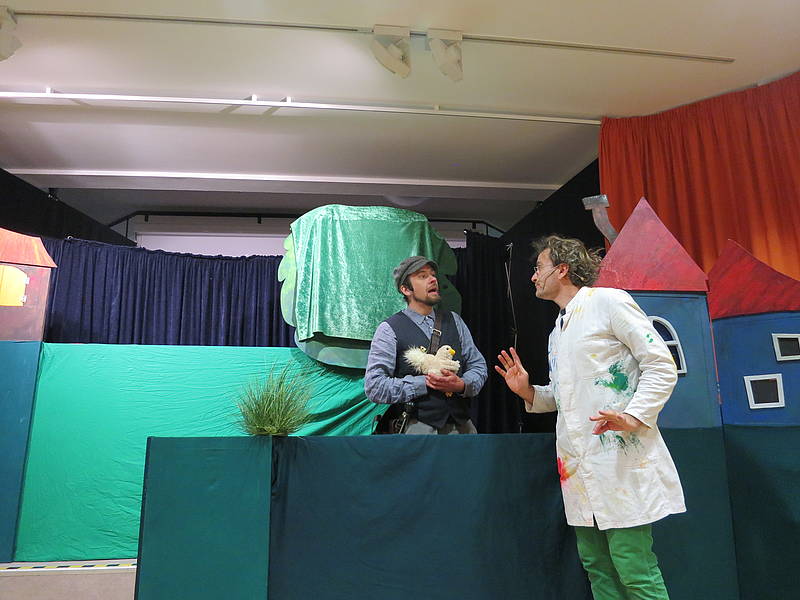 Es präsentierte sich uns ein Maler, der ganz besondere Bilder malen konnte. Seine Bilder wurden zum Leben erweckt! Und so nahm die Geschichte ihren Lauf: Der Maler malte nämlich einen bösen Werwolf, welcher es auf das arme Hühnchen der lieben Rosi abgesehen hatte und es entführte. Die kleine Rosi musste nun ganz mutig sein und machte sich auf, um das arme Hühnchen zu befreien.