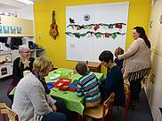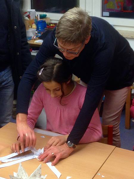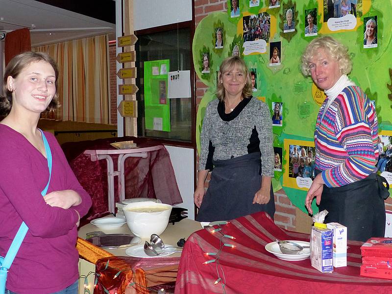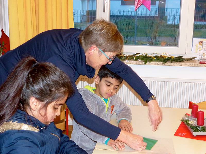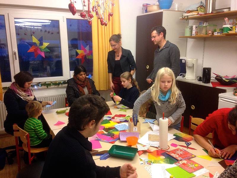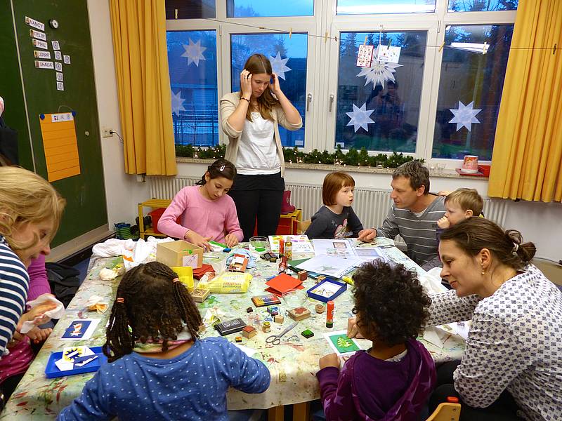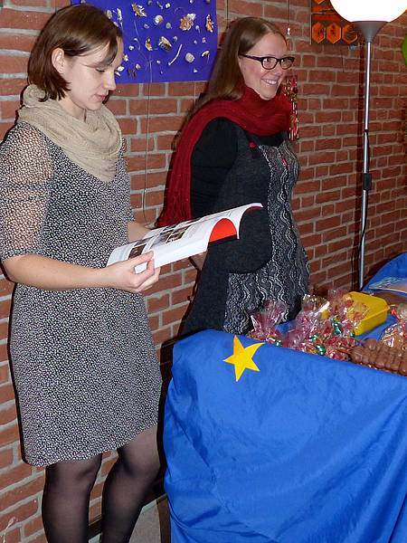 Wer in weihnachtliche Stimmung versetzt werden wollte, musste sich lediglich in der Stiller-Klasse zum gemeinsamen Singen einfinden; dort begleiteten Katharina Koch mit dem Cello und Andreas Stiller mit der Gitarre die Singenden.