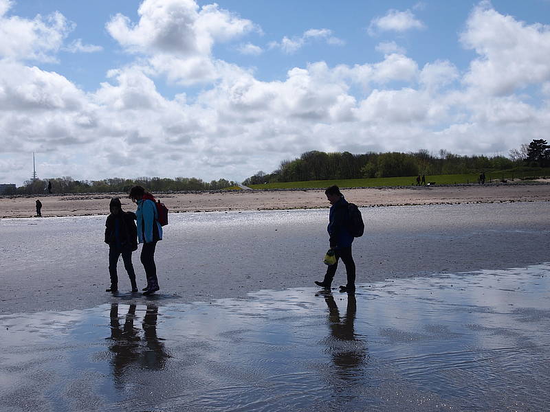 Nach diesem tollen Abenteuer machten wir Picknick am Strand und erkundeten anschließend die Kugelbake und sammelten Muschelschalen, Schneckenhäuser, Algen und Sand.