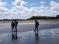Nach Ankunft im Haus zur Sahlenburg, unserer Unterkunft, sind wir zum Strand gegangen. Einige von uns zogen sich die Schuhe und gingen barfuß ins kalte Nordseewasser. Nach Erkundung der Salzwiesen und dem ersten Erklimmen des Deiches sind wir ein Eis essen gegangen. Eine Lachmöwe hätte uns beinahe das Eis geklaut, doch wir konnten sie gemeinsam in die Flucht schlagen.