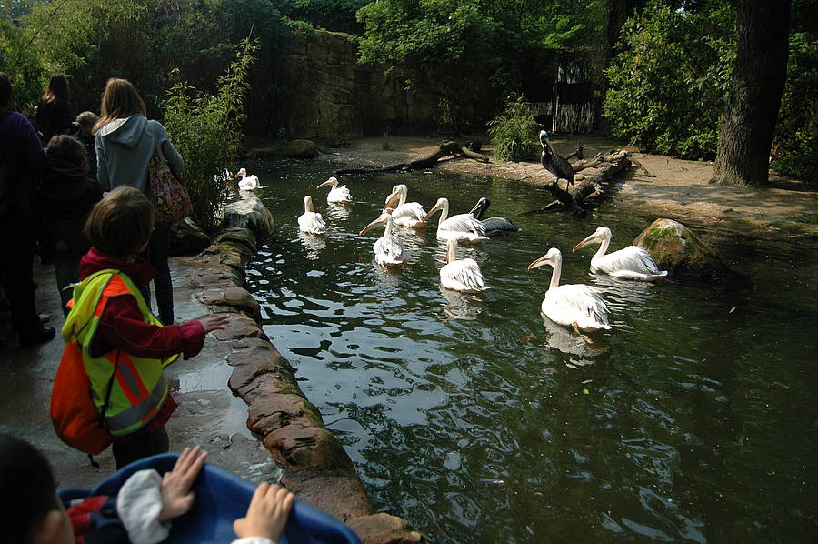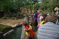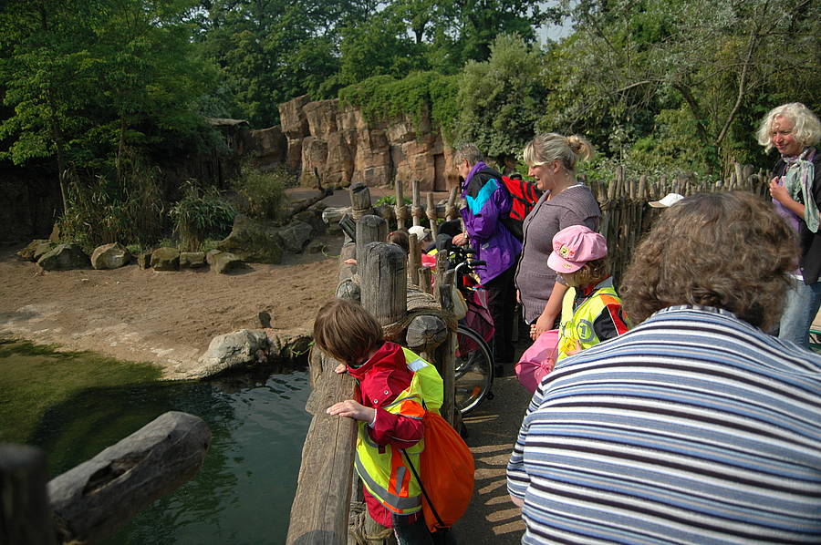 Am 11. Mai 2011 war die Mäuseklasse im Zoo Hannover. Schon Montag und Dienstag waren die Kinder sehr aufgeregt und fragten immer wieder, wann es endlich losgehen würde! Am Mittwoch war es endlich so weit. Kaum waren die Mäuseschüler in der Schule angekommen, ging es auch schon los zum Bahnhof, wo wir Armend und Frau Hesse getroffen haben. Mit der S-Bahn ging es nach Hannover. Am Hauptbahnhof wartete schon Frau Saniter. Wir mussten noch eine kurze Strecke mit dem Bus fahren, dann waren wir endlich, endlich da! Und zum Glück hatte es inzwischen auch aufgehört zu regnen.