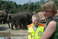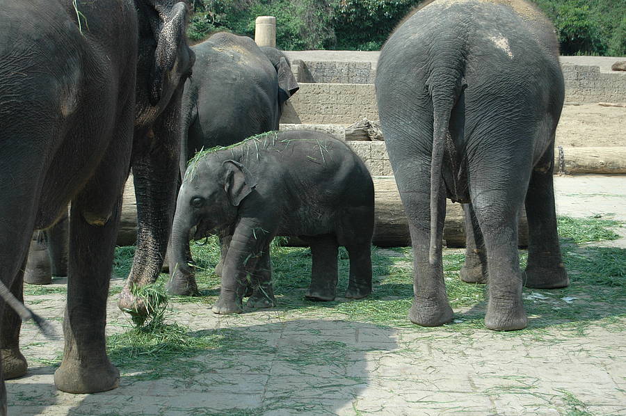 Und dann kamen wir endlich zu den Elefanten! Frau Liebscher war traurig, dass man sie nicht streicheln konnte, aber Frau Saniter war ganz froh, dass da ein Graben dazwischen war - den was würde wohl passieren, wenn einem so ein Elefant auf den Fuß treten würde?! Einige Elefanten hatten sich Gras auf den Rücken gestreut, so dass es aussah, als hätten sie grüne Haare...