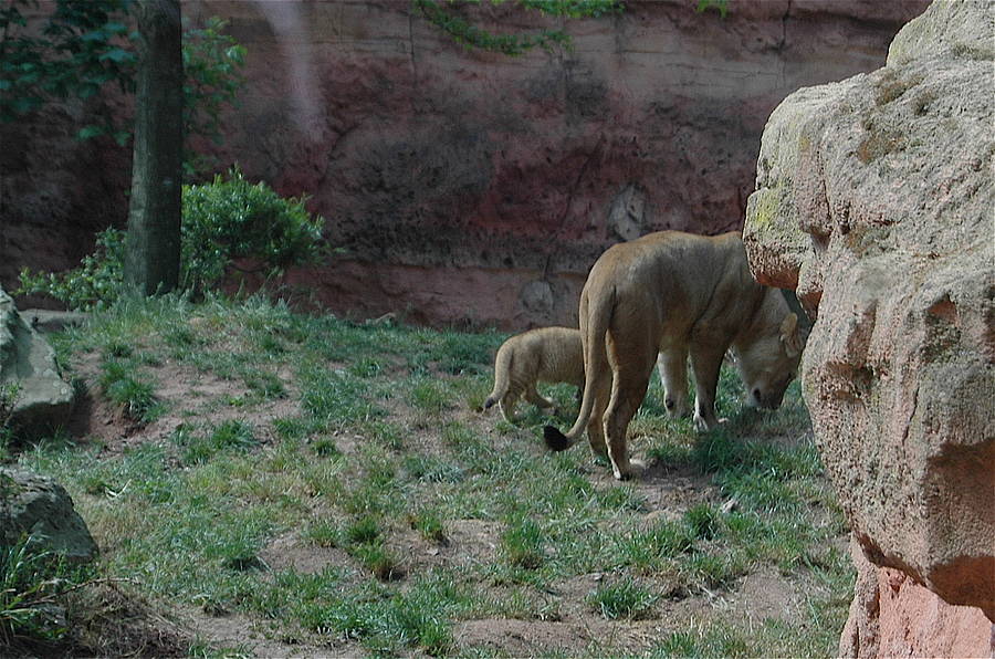 Nach der Bootstour haben wir überlegt, wo wir als nächstes hingehen wollten. Für Julia war das ganz klar: zu den Elefanten! Frau Kistner wollte lieber zu den Eisbären. Gut, dass wir uns nicht entscheiden mussten, denn wer vom Bootsanleger zu den Elefanten will, kommt fast automatisch an den Eisbären vorbei. Vorher haben wir noch gesehen, dass die Löwenbabys einen Spaziergang durchs Gehege gemacht haben - waren die niedlich! Die hätte man am liebsten mit nach Hause genommen... Aber Louis war dagegen, er hat immer wieder gesagt, wie gefährlich so ein Löwe doch sei!