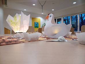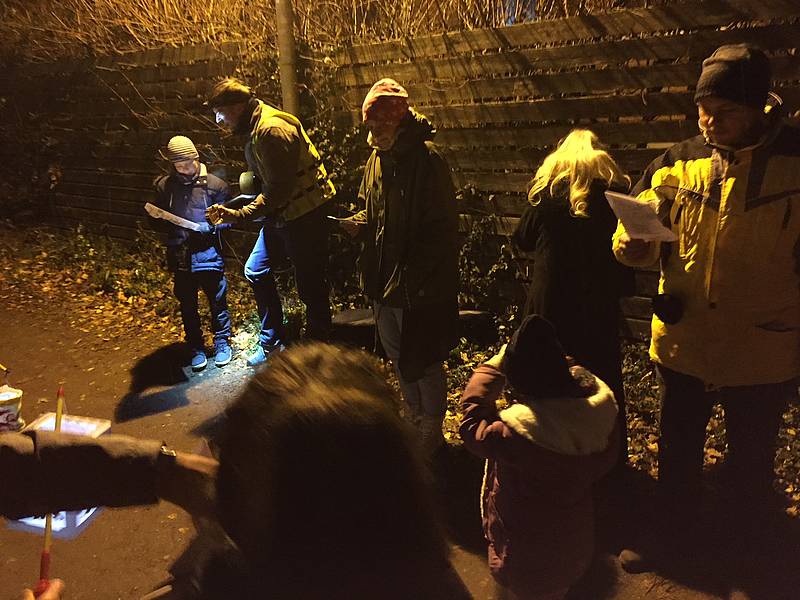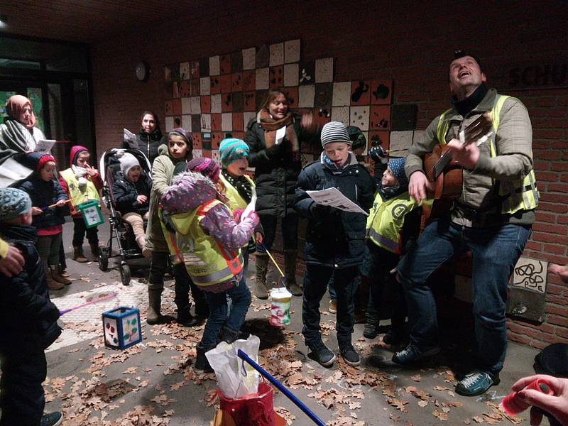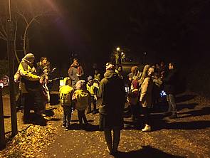 Am 20. November haben die Hasen-, Bären- und Känguruklasse ein Laternenfest gefeiert. Schon lange vorher fingen die Vorbereitungen an: Laternen und Tischlichter basteln wie auch Martinsgänse backen. Es wurden Laternenlieder geübt und natürlich auch Laterne gehen. Am Tag des Laternenfestes hatten wir viel Glück mit dem Wetter: es war herbstlich schön kalt! Am Anfang haben sich die Kinder und Erwachsenen bei Kuchen und Herzhaftem im Forum aufgewärmt. Als es endlich dunkel war, ging unser Laternenumzug los. Die Laternen wiesen uns den Weg. Zwischendurch machten wir Station und sangen ein Laternenlied. So erleuchteten wir die Nacht mit unserem Licht und unserem Gesang!