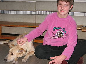 Seit nunmehr eineinhalb Jahren findet erstmals wieder einmal wöchentlich die Hunde-AG statt. Inhaltlich werden neben sachunterrichtlichen Schwerpunkten (Abstammung, Körperbau, Fütterung, Pflege und Umgang mit dem Hund) Rechnung getragen und selbstverständlich auch die Aspekte „tiergestützter Pädagogik“ verwirklicht. Auf diese Weise ergeben sich für die Schülerinnen und Schüler vielfältige Möglichkeiten Wissen und tatsächlich praktische Erfahrungen im Umgang mit Hunden (Abbau von Ängsten, Erweiterung kommunikativer Kompetenzen, Lernen von Verantwortung gegenüber Lebewesen, Förderung sozialen Lernens) zu erwerben. Mittelpunkt dieses AG-Angebots ist natürlich „Vinello“, der bereits seit März 2006 freudig seinen „Dienst“ an unserer Schule verrichtet. Zeitweise wird er bei seinen Aufgaben dabei von „Ronja“ (Schäferhund) unterstützt. Abschluß der Hunde-AG wird ein „Hundeführerschein“ sein, der den Schülerinnen und Schülern ihre Fertigkeiten im Umgang mit Hunden und ihr Wissen bestätigt.