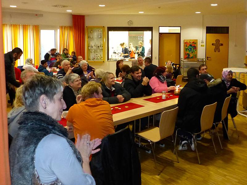 Wer in weihnachtliche Stimmung versetzt werden wollte,  musste sich lediglich in der Stiller-Klasse zum gemeinsamen Singen einfinden; dort begleiteten Katharina Koch mit dem Cello und Andreas Stiller mit der Gitarre die Singenden.
