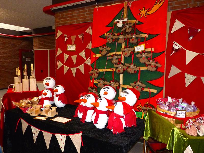 Andere Klassen boten sehr schöne und vor allem selber hergestellte weihnachtliche Dekorationen zum Kauf an: neben Adventsgestecken,  verschiedenen Sternen, Schneemännern und Wimpelgirlanden konnte ein jeder hier noch kleine Geschenke erwerben.