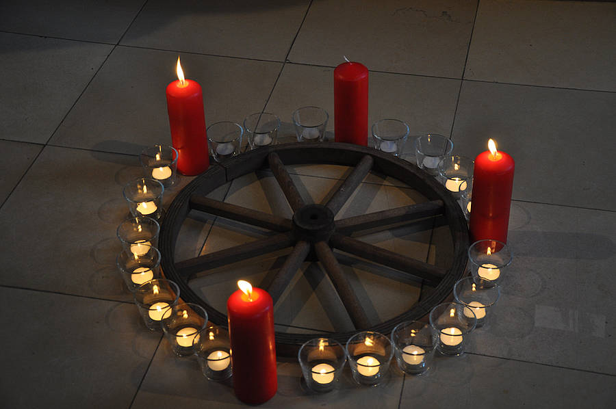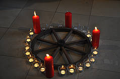 Diese Erfahrung sollten auch wir im Gottesdienst machen, und so hatte Pastor Brodermanns ebenfalls ein echtes Wagenrad mitgebracht. Zwei bis drei Schüler aus jeder Klasse durften nach vorne kommen und angezündete Kerzen rund um das Wagenrad aufstellen. Wir merkten, dass es immer heller und wärmer wurde, je mehr Kerzen brannten. Dann zählten wir, dass nur noch fünf kleine Kerzen und eine große Kerze unangezündet waren. Vielleicht kann sich jemand denken, wie lange wir an diesem 18. Dezember noch bis Heiligabend warten mussten?