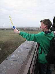 Später haben wir den Leuchtturm bestiegen, nach 138 Stufen hat man einen ganz schönen Drehwurm! Von der Aussichtsplattform aus, konnte man die ganze Insel überblicken. Für Patrick auch eine schöne Gelegenheit, Seifenblasen übers Land wehen zu lassen!