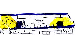 Die restliche Gruppe ist am Montag um kurz vor acht vom S- Bahnhof Langenhagen- Mitte gestartet. Patrick hat gemalt, wie der Zug aussah.