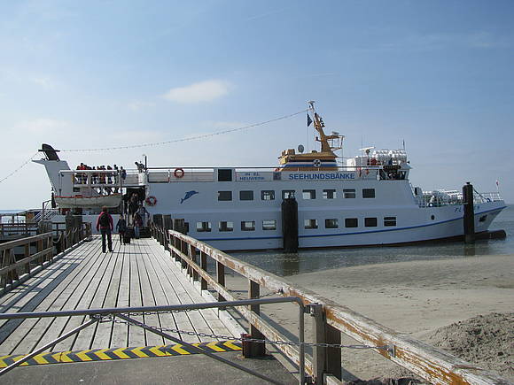 Am Mittwoch sind wir dann mit dem Schiff zur Insel Neuwerk gefahren. Bei Sonnenschein konnte wir oben auf dem Aussichtdeck sitzen und hatten eine tolle Aussicht. Vom Schiff aus konnten wir "unser" Haus hinter dem Deich sehen, dann sind wir an der Kugelbake vorbeigefahren. Das ist ein Bauwerk aus Holz, dass die Grenze zwischen der Elbe und der Nordsee markiert. Nach eineinhalb Stunden fahrt liegt das Schiff dann am Fähranleger von der Insel Neuwerk an.