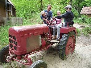 Eine weitere Überraschung für uns war auf dem Spielplatz: ein alter Trecker zum Spielen ...