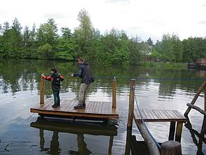 Am Schluss haben wir auf dem See ein Floß entdeckt. Mutig wie die Seefahrer sind wir jeweils zu zweit mit dem Floß gefahren, man musste sich nur an einem Seil weiterziehen: „Ahoi, wir kommen!“. Ratet einmal, wer ins Wasser gefallen ist! Keiner!!!