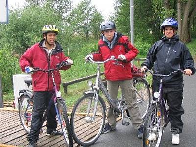 Arsim, Mareike, Phillip, Frau Pries und Frau Süberkrüb starteten trotzdem, wie geplant, mit dem Fahrrad (in der leichten Hoffnung, dass der Regen doch noch nachlassen würde) und kamen nach 33 km und ca. 2,5 Stunden Fahrt pitschnass, aber stolz auf die erbrachte Leistung in der Jugendherberge an. Frau Twer und Ramon hatten inzwischen Sarah und Susanne ( Miguel konnte leider nicht teilnehmen) und unser ganzes Gepäck im Schulbus nach Mardorf gebracht.