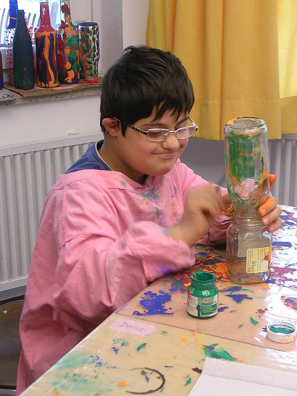 Die LandArt-Gruppe hatte mehrere Ideen, um unseren Schulhof zu verschönern. Leider sind nicht alle bildlich dokumentiert. Es gab die Angebote Steine bemalen, Flaschen bemalen, Strohhalmketten für die Bäume zu basteln und Serviettenbilder zu machen, um anschließend etwas mit nach Hause nehmen zu können. Wir produzierten also drei Tage lang Schönes für draußen und hatten sichtlich viel Spaß! Viel Eifer und eine gehörige Portion Konzentration gehörten dazu, damit wir schließlich auf dem Sommerfest auch etwas präsentieren konnten. In der Ecke hinter dem Sandkasten kann man nun unsere bunten Steine bewundern, im Kräuterbeet am Haupteingang stehen einige buntbemalte Flaschen und vor der Klasse Berenji ist der Baum hübsch geschmückt mit Strohhalmketten. Wir sind gespannt welches bunte Ereignis uns in der nächsten Projektwoche erwartet! :)