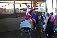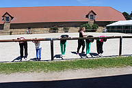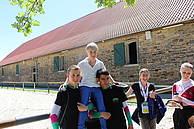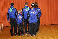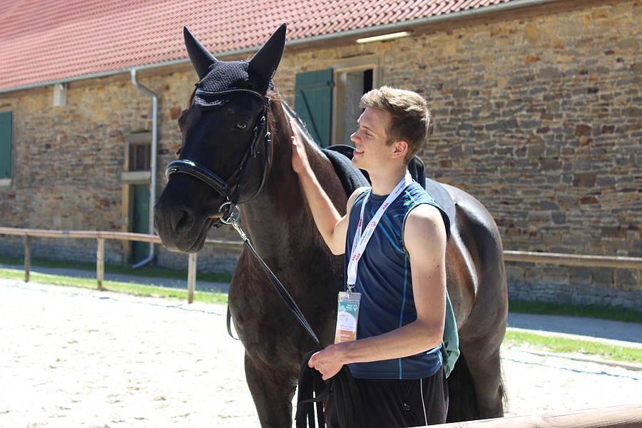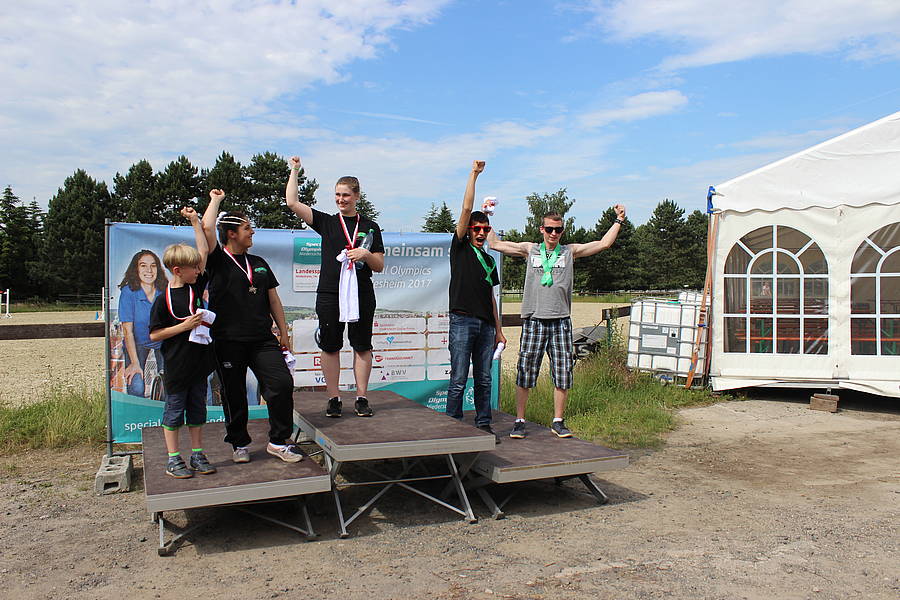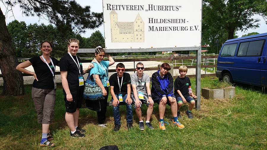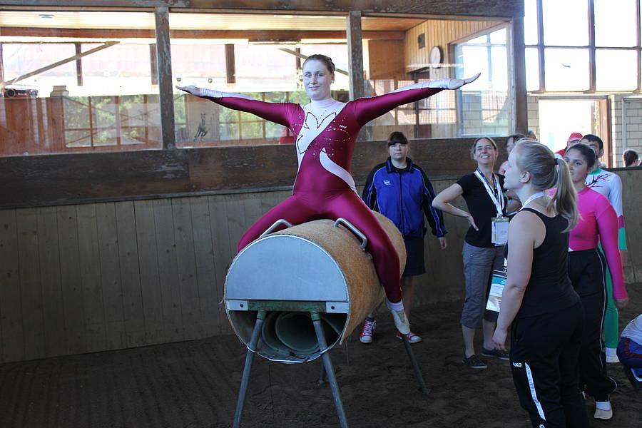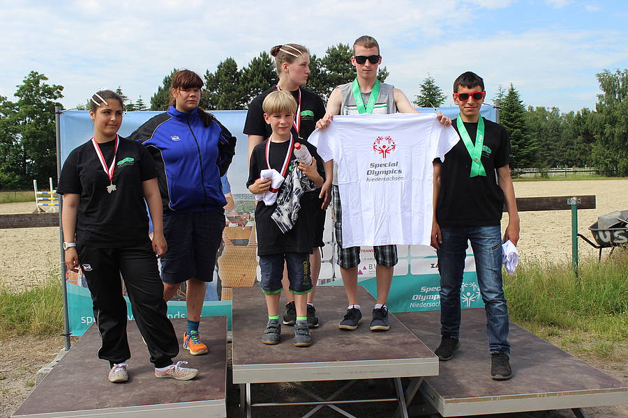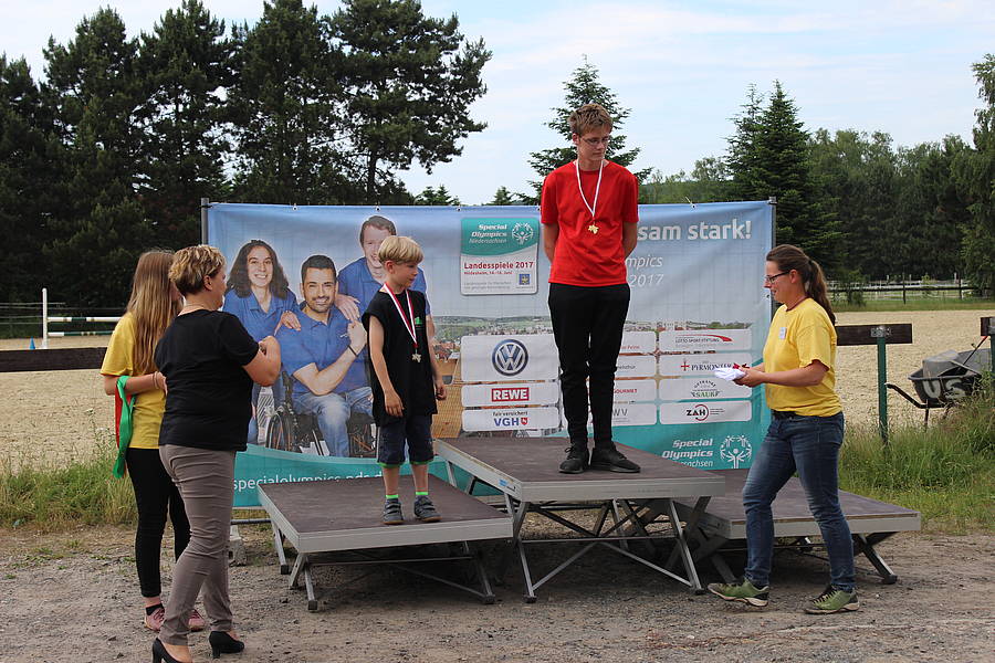 Auch in diesem Jahr konnten die Voltigierer zu den Special Olympics fahren, die diesmal vom 14.-16. Juni in Hildesheim stattfanden. Wir schliefen an diesen Tagen in der Schule, weil wir morgens am Donnerstag und Freitag sehr früh in Hildesheim sein mussten. Die Jungs Patrick, Khaled und Justin schliefen im Matschraum, die Mädchen Feride, Jeanette und Sandra schliefen im Snoezelen-Raum und Frau Ridder und Frau Koch im Lehrerzimmer. Jeden Tag hatten wir verschiedene Auftritte, Klassifizierungen und Küren im Einzel, Patrick mit seinem Unified Partner Justus auch im Duo. Wir haben viel gewartet, die schicken Anzüge an und wieder ausgezogen, den anderen Voltigierern und Reitern zugeschaut und viel Spaß gehabt. Außerdem waren wir noch bei der Eröffnungsfeier und bei einem Kulturbankett auf dem Marktplatz von Hildesheim. Am Donnerstag Nachmittag war die Siegerehrung: Jeanette hat einen ersten Platz gemacht, Feride und Justin einen zweiten und Patrick und Khaled einen vierten. Super!!! Und am Freitag bekamen Patrick und sein Partner Justus noch eine weitere Goldmedaille. Wahnsinn! Nun ein paar Fotos von den schönen Tagen: