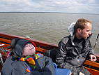 Am Donnerstag machten wir uns auf große Fahrt! Wir holten Jannik und Jan-Niklas aus dem Kinderpflegeheim ab und weiter ging es nach Steinhude. Zum Glück war es nicht mehr so windig und die Sonne traute sich immer mehr heraus. In Steinhude wartete auf uns ein „Auswanderer“, ein großes Holzboot, mit dem wir einmal über das ganze „Meer“ zum anderen Ufer nach Mardorf fuhren. Spannend war das Ein- und Aussteigen, vor allem für Dana, Jannik und Jan-Niklas. Zusammen mit ihrem Rollstuhl wurden sie in das Boot gehoben. Aber alles hat gut geklappt, und außerdem lieben wir Bären ja das Abenteuer!