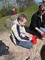 In Mardorf angekommen machten wir uns auf den Weg zu dem „großen Strand“, der uns schon so lange angekündigt war: „Ist der Strand gleich da?“. Das sollte ein bisschen dauern. Zwischendurch stärkten wir uns in einem richtigen Restaurant mit „Pommes rot, weiß oder beides“. Gestärkt ereichten wir dann unser Ziel: der Strand „Weiße Düne“. Da gab es kein Halten mehr: die Schaufeln und Sandformen ausgepackt und schon ging es los! Während wir buddelten und buken, machten es sich Jannik und Jan-Niklas am Strand bequem. Vor der Rückfahrt übers Meer versorgten wir uns am Kiosk mit einem Eis. Marie nahm die Bestellung auf „Erdbeere oder Vanille?“ und verteilte das Eis.
