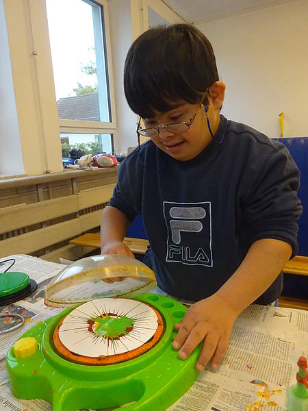 Am Montag, den 29.10.2018, gab es für die Primarstufenklassen der Schule unter den Eichen einiges zu entdecken. Der Arbeitskreis Unterstützte Kommunikation hatte einen „UK-Markttag“ zum Thema „Herbst“ vorbereitet. In der Turnhalle wurden vier spannende Stationen aufgebaut. Die Schüler und Schülerinnen erprobten an jeder Station unterschiedliche Geräte der Unterstützten Kommunikation. Alle konnten mitarbeiten und hatten viel Spaß, die Aufgaben zu lösen.