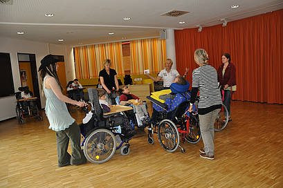 Square-Dance mit dem Rollstuhl.