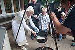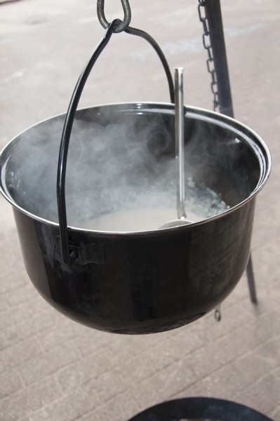 In einem großen Topf kochten wir die Grütze über dem Lagerfeuer. Zum Schluss probierten dann alle Bauern von einem Teller! Die Meinung über das mittelalterliche Essen war geteilt. Nur Louis und Beatrice langten mit gutem Appetit zu.