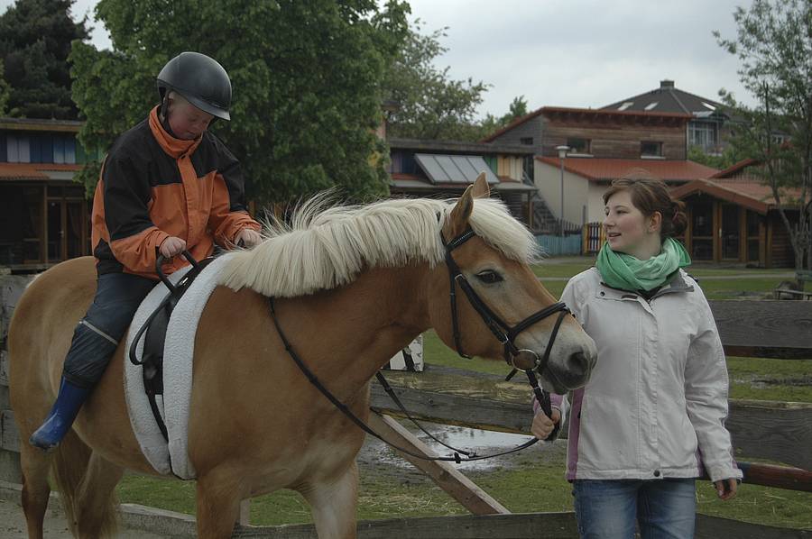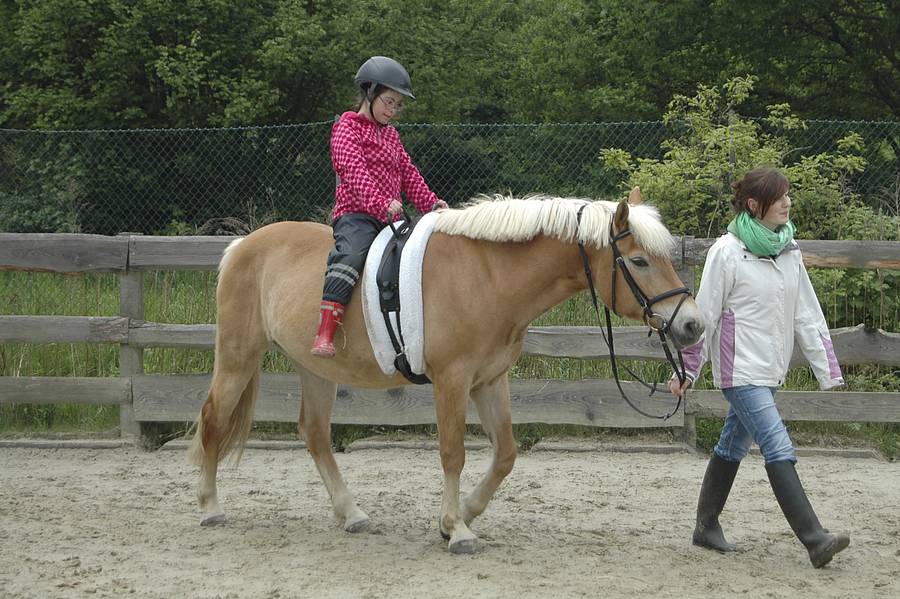Am Donnerstag haben wir die Pferde Klara und Hennigson geputzt und sind in der Reitbahn geritten.