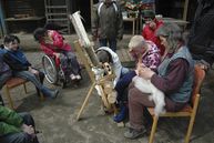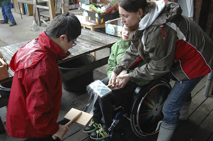Die trockene Wolle musste mit Drahtbürsten immer wieder gekämmt werden.