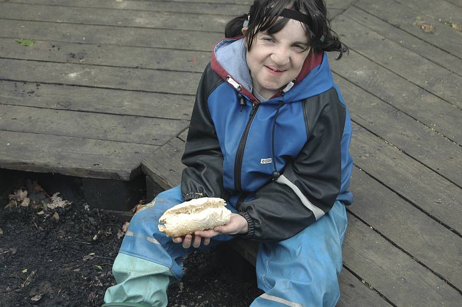 Freitag haben wir eine ganz besondere Snackpause gemacht: Am Lagerfeuer wurde Stockbrot gebacken. Dafür muss man ganz schön geduldig sein!